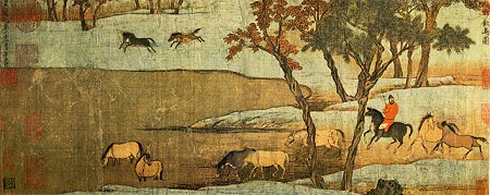 宋代,是中国绘画艺术发展史上的一个高峰时代。皇帝宋徽宗政治上无所作为,但在艺术上富有才华,他本人名见史载的作品就有数百幅之多,他的《芙蓉锦鸡图》实现了工笔画难以企及的形神兼备、富于逸韵的境界。正是由于皇家宫廷的重视和皇帝的全心投入,当时宣和画院成为了中国历史上皇家画院最为昌盛的时期,仅《宣和画谱》就记载了二百三十一位画家,六千三百九十六幅作品,从而迎来了元明清文人画时代的到来。