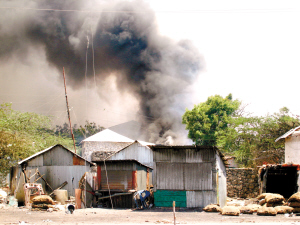 3月30日,再次爆发激战的摩加迪沙一居民区升起黑烟。