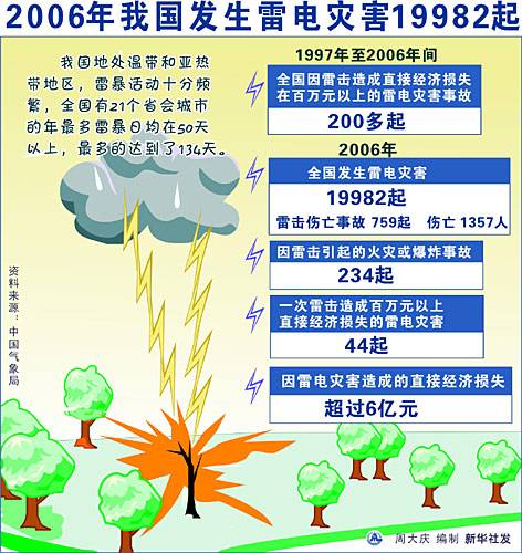 据重庆气象部门有关人士介绍,重庆是个雷击多发城市,特别是在夏季,雷击事故时有发生,造成的损失每年都在亿元以上。今年4月1日18时左右,重庆垫江县境内也是雷雨大作,一在建高速路工地上,有10名工人正拥挤在工棚里吃晚饭,结果遭遇雷击,造成4名工人当场死亡、5人重伤的严重事故。后据有关专家调查得出初步结论,造成此次事故的原因应该是在雷雨天气下使用电饭褒做饭而引发雷击,雷击产生的巨大声波让工人们死亡或者受伤。