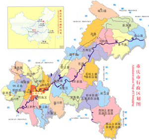 重庆位于北纬28度10分-32度13分,东经105度11分-110度11分之间,地处较为发达的东部地区和资源丰富的西部地区的结合部,东邻湖北、湖南,南靠贵州,西接四川,北连陕西,是长江上游最大的经济中心、西南工商业重镇和水陆交通枢纽。1997年3月14日,第八届全国人民代表大会第五次会议通过了设立重庆直辖市的决议,与北京、天津、上海同为四大直辖市。