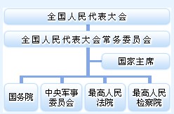 问题: 1.你知道中国的“两会”吗?2013年全国两会 >>> 1.中国的政治制度与西方有什么区别? 2.中国有多少个政党?它们与中国共产党有着什么样的关系? 3.中国政府的机构设置是怎样的? 4.中国的立法机关是什么? 5.中国的司法机关是什么? 一、中国的政治制度  1.人民代表大会制度 全国人大>> 十二届人大一次会议   中华人民共和国宪法规定:中华人民共和国全国人民代表大会是最高国家权力机关。它的常设机关是全国人民代表大会常务委员会。 全国人民代表大会和全国人民代表大会常务委员会行使国家立法权。 全国人民代表大会由省、自治区、直辖市、特别行政区和军队选出的代表组成。各少数民族都应当有适当名额的代表。 全国人民代表大会行使下列职权:修改宪法;监督宪法的实施;制定和修改刑事、民事、国家机构的和其他的基本法律;选举中华人民共和国主席、副主席。>>
